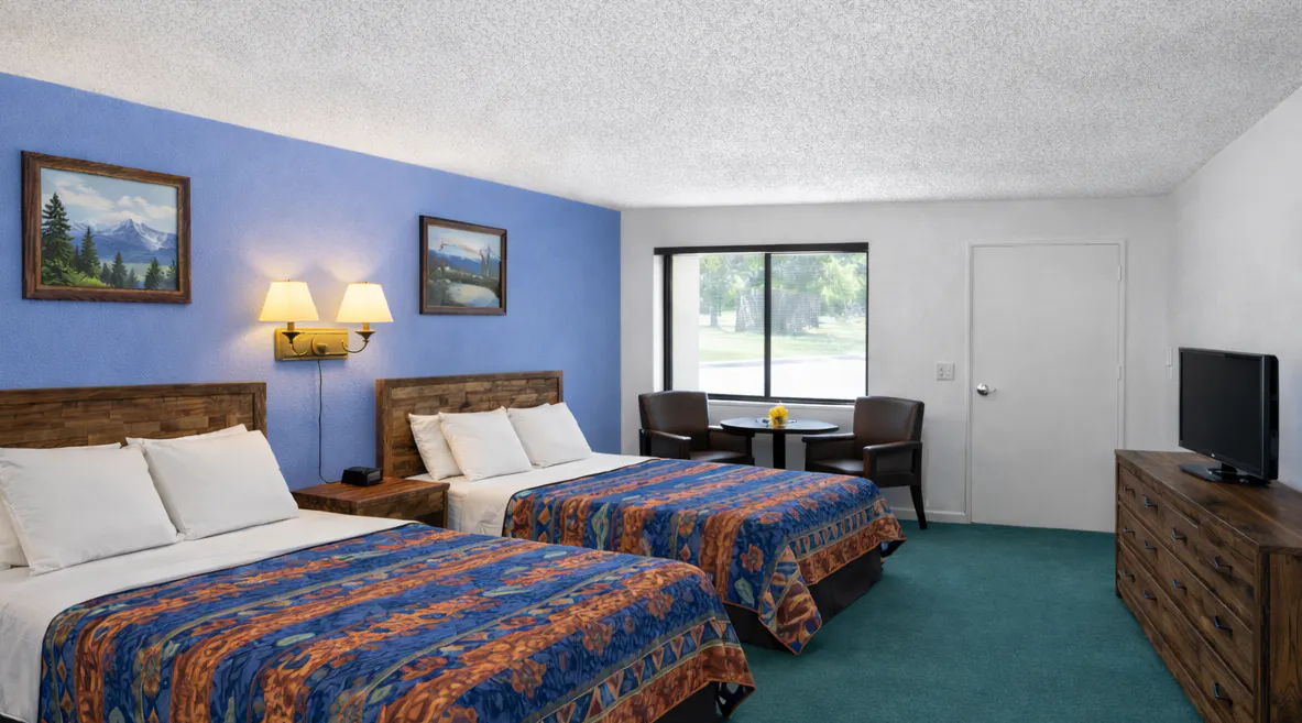 Triple queen beds, air-conditioning, cable TV, coffee maker, alarm clock, wifi, and en-suite bathroom.